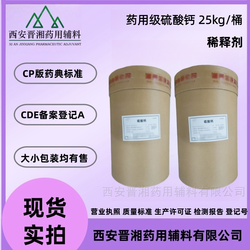 本品由碳酸鈣與硫酸反應或氯化鈣溶液與可溶性硫酸鹽反應制得。按熾灼品計算,含CaSO4不得少于99.0%。